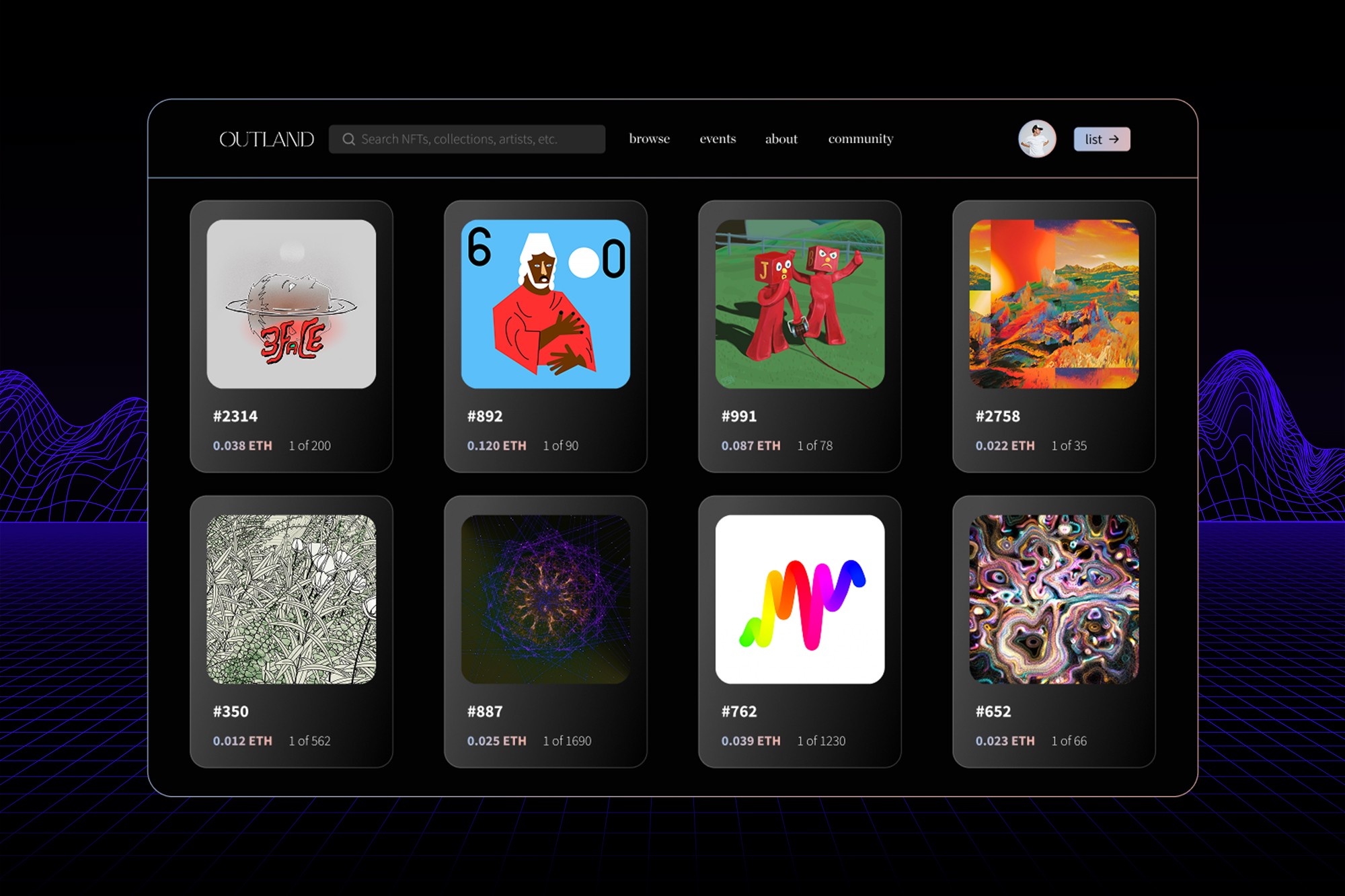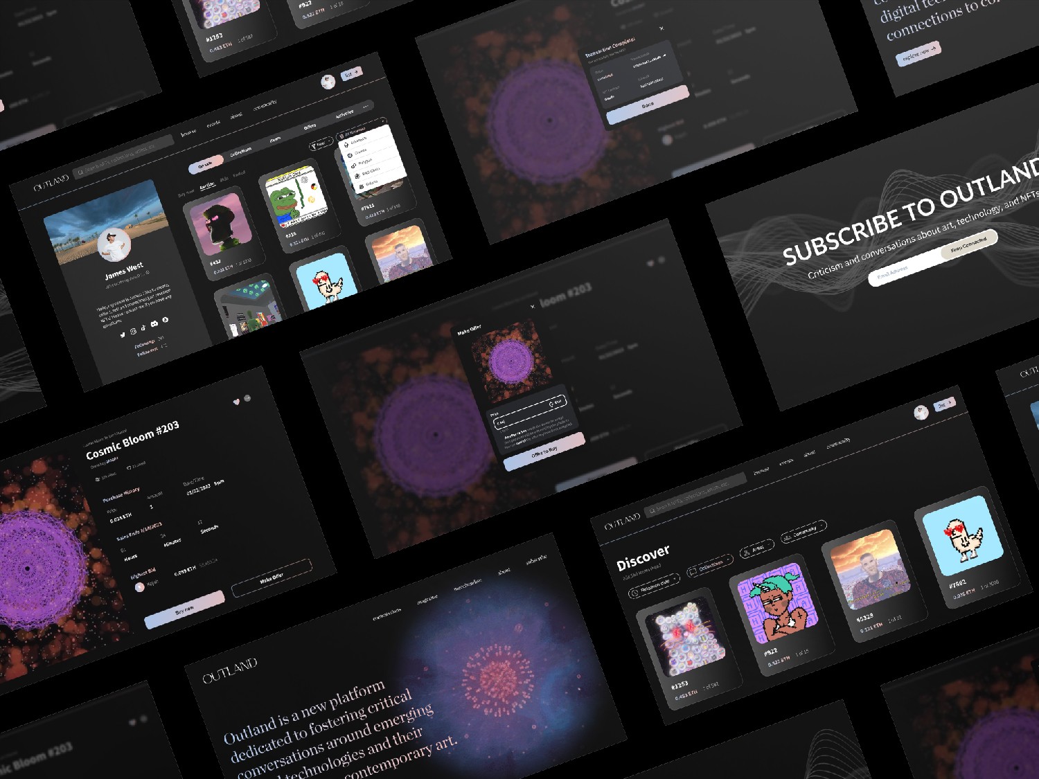 Outland is where digital art meets thoughtful design. We create interfaces that spark dialogue between contemporary art and technology—bridging the gap between pixels and paint. From curating seamless user journeys to collaborating with museums and galleries, we help digital artists connect with the world of crypto art through intuitive, expressive, and beautifully crafted experiences.